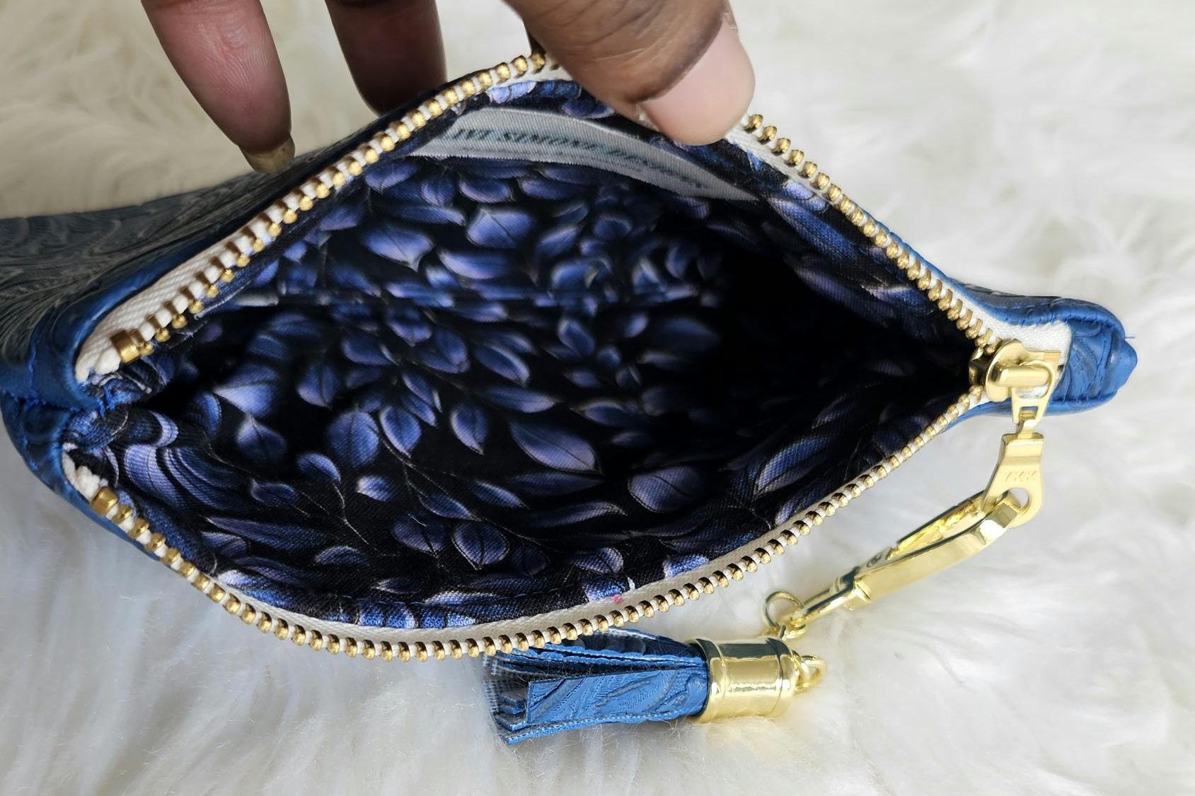 This simple but gorgeous clutch is the perfect accompaniment to any formal event. It features a zippered closure, four card slots and plenty of space for phone, money, makeup and whatever else to be stashed away in this pretty little clutch. Add the matching pouch for optimal organization for coins, earrings and all the small things we collect throughout the day. The clutch has a detachable key fob that can be added the pouch, and the pouch comes with a matching tassel that can be removed to add to any accessory or bag.