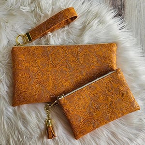 This simple but gorgeous clutch is the perfect accompaniment to any formal event. It features a zippered closure, four card slots and plenty of space for phone, money, makeup and whatever else to be stashed away in this pretty little clutch. Add the matching pouch for optimal organization for coins, earrings and all the small things we collect throughout the day. The clutch has a detachable key fob that can be added the pouch, and the pouch comes with a matching tassel that can be removed to add to any accessory or bag.
