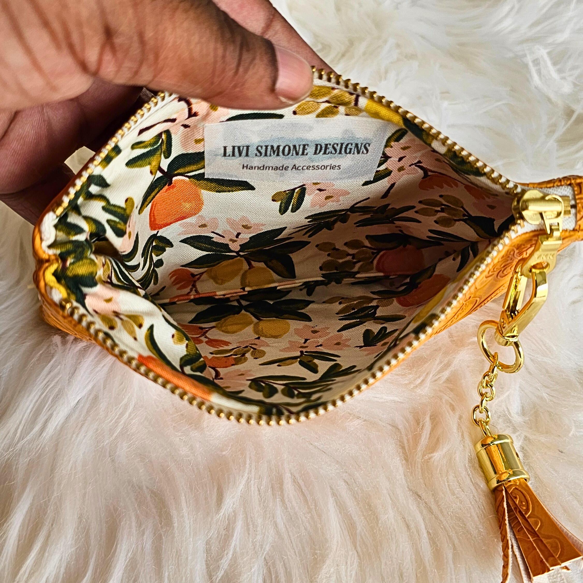 Marigold Handmade Embossed Faux Leather zippered pouch