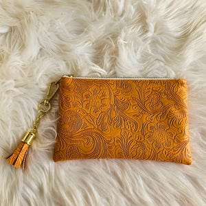 This handmade pouch features a sleek faux leather design, combining small size with big style. Perfect for multiple uses, it offers a versatile and practical way to keep your essentials organized. Pouch comes with a removeable tassel to attach pouch to a key chain or lanyard or even your pant loop!
